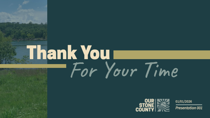 Customizable slide deck presentations for Our Stone County, preparing them for any public communication needs.