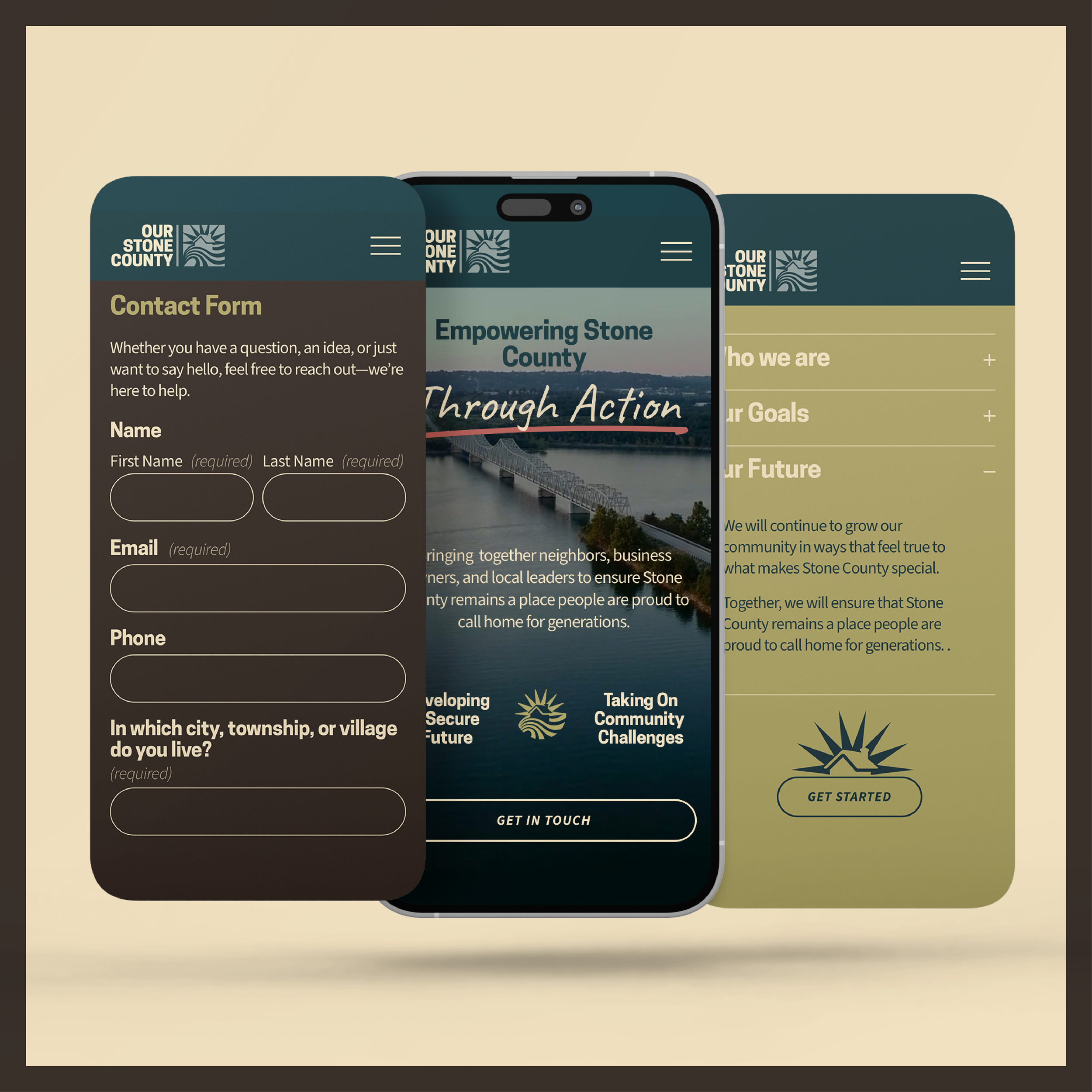Through ActionOur Stone County is a coalition of neighbors, business owners, and local leaders coming together to tackle issues as a community. They needed a strong, secure, and trustworthy brand identity to connect with the people of Stone County, MO.
