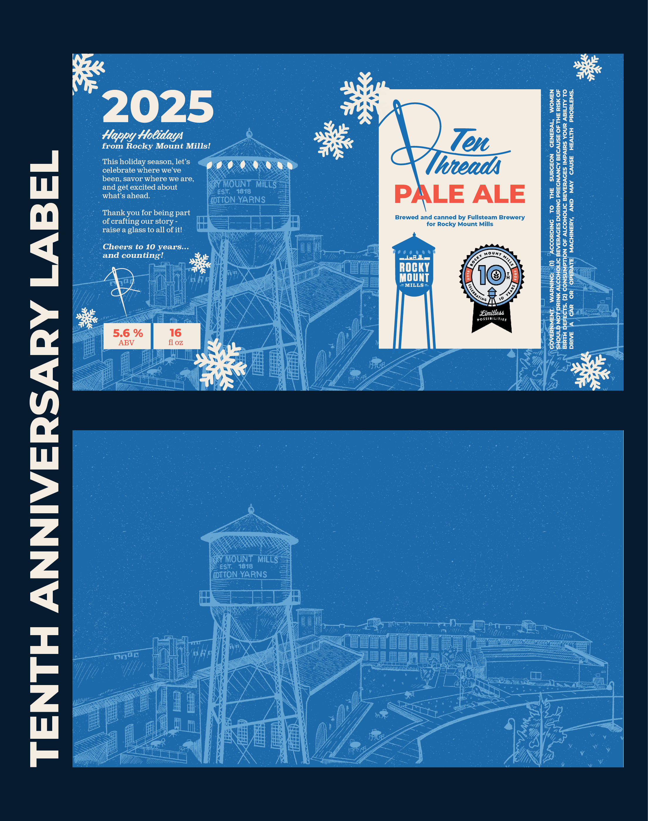 PALE ALERocky Mount Mills celebrated their tenth anniversary with this limited batch. We had the pleasure to create a logo graphic, illustrate the brewing campus, and arrange the label for this specialty one-time brew.